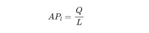 الإنتاج المتوسط (Average Production | AP) لكل عامل إنتاج هو إجمالي الإنتاج مقسومًا على عامل الإنتاج هذا. على سبيل المثال، يتم حساب متوسط إنتاج العمالة على النحو التالي.