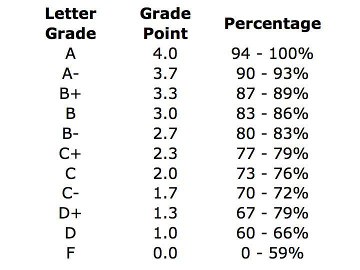 عادةً ما يتخذ الدرجات الأكاديمية شكل خمسة أو ستة أو سبعة درجات من الحروف. تقليديا ، الدرجات هي A + ، A ، A− ، B + ، B ، B− ، C + ، C ، C− ، D + ، D ، D− و F ، مع A + هي الأعلى و F هي الأدنى. في بعض الحالات ، يمكن أن تكون التقديرات عددية أيضًا. تختلف التحويلات من رقم إلى حرف بشكل عام من نظام إلى آخر وبين التخصصات والحالة.