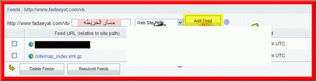 بعد التحقق من ملكيه الموقع اضغط Feeds