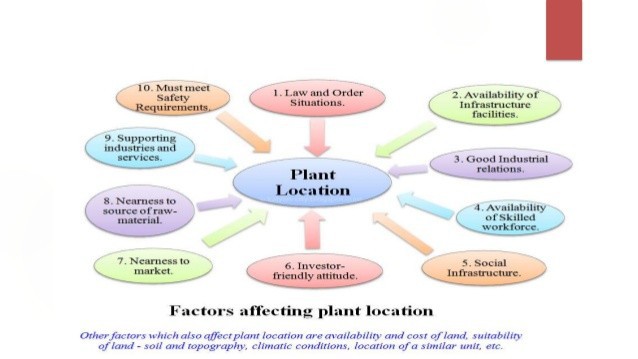Any facility can be viewed as having a location and consisting of several components. Bylocation it is meant the placement of a facility in such a way that it will satisfy specified requirementsconcerning customers, suppliers, and other facilities with which it interacts. The components are the structure (building and services), layout (equipment, machinery, furnishings), and handling system