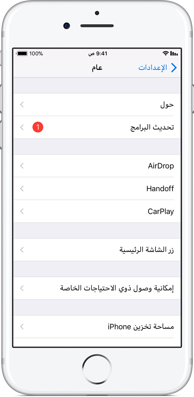 - انقر على “الإعدادات” > “عام” > “تحديث البرامج”.