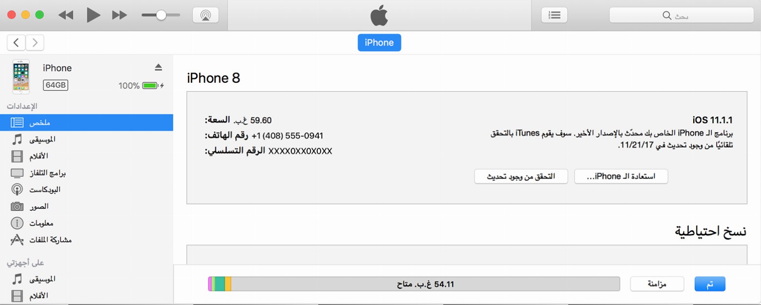 - تحديث الجهاز باستخدام iTunes