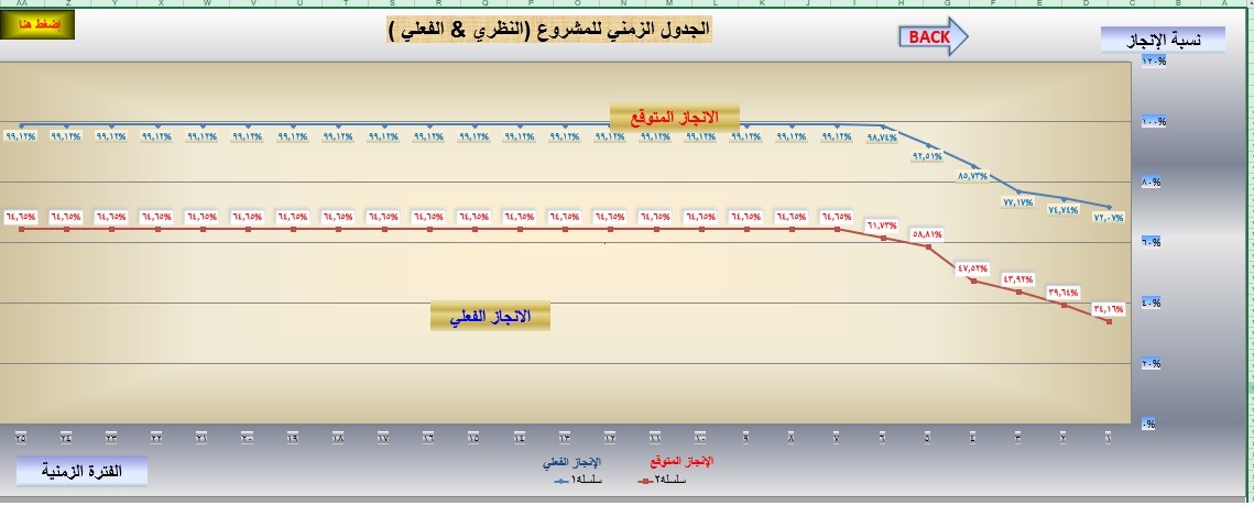 9- بعد الإنتهاء من إدراج جميع البنود يمكن عرض منحني الإنجاز النظي والانجاز الفعلي عن طريق الضغط علي زر رسم معدلات إنجاز المشروع