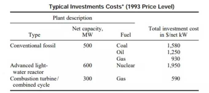 period in years and dividing by 2 to reflect the carrying costs on the average commitment of capital toward equipment and labor during construction. Escalation effects for plants to be completed beyond this date may be extrapolated in accordance with anticipated cost trends for labor, material, and equipment. Historical cost trends, by region, as experienced in the power industry, which can be helpful in forecasting future costs, may be determined by use of the figures in Table 17.5.2. Escalation can significantly affect plant costs on future projects, especially in view of the 10- to 12-year engineering and construction periods historically experienced for nuclear facilities and the corresponding 5 to 6 years required for fossil-fueled power plants. In addition to rising equipment, construction labor, and material costs, major factors influencing the upward trend in plant costs include increased investment in environmental control systems, an emphasis on improved quality assurance and plant reliability, and a concern for safety, particularly in the nuclear field. Conventional Steam-Electric Plants Conventional fossil plant investment costs given in Table 17.5.1 are for 500-MW nominal units which are deemed to be representative of future central station fossil units. Costs will vary from those in the table due to equipment arrangement, pollution control systems, foundations, and cooling-water-system