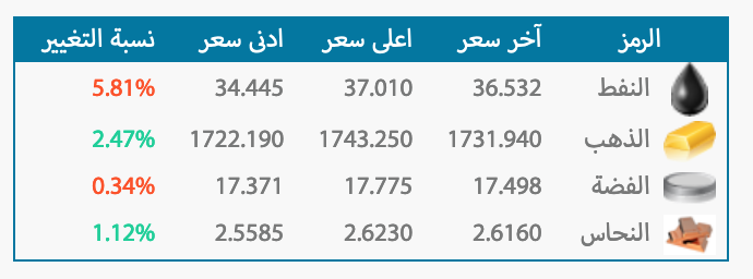 وطرأ ارتفاعا على أسعار الذهب من 0.5 بالمئة إلى 1,736.37 دولار ، من مستوى افتتاح تعاملات اليوم عند 1,727.18 دولار، وسجلت أدنى مستوى عند 1,722.21 دولار.