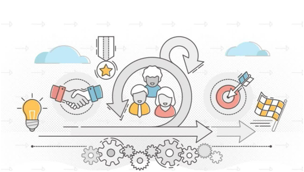 ينقسم المشروع الرشيق إلى عدة خطوات تدريجية، وفي منتصفها نرى مرحلة التعليقات من العملاء والمساهمين.