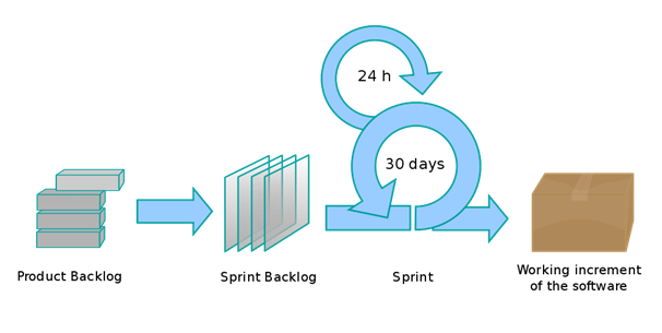 فرق سكرم في فترات زمنية قصيرة، يعمل علی الصندوق المعروف باسم سبرینت (عادةً من أسبوعين إلى أربعة أسابيع) على تطوير منتجات قابلة للتوزيع.