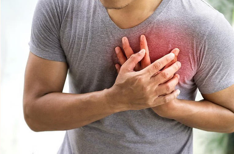 وتشمل أعراض النوبة القلبية الشائعة ألماً في الصدر يشبه الإحساس بضغط أو ثقل، والشعور بألمٍ أو انزعاج يمتد إلى الكتف أو الذراع أو الظهر أو العنق أو الفك أو الأسنان وأحياناً يصل إلى الجزء العلوي من البطن.