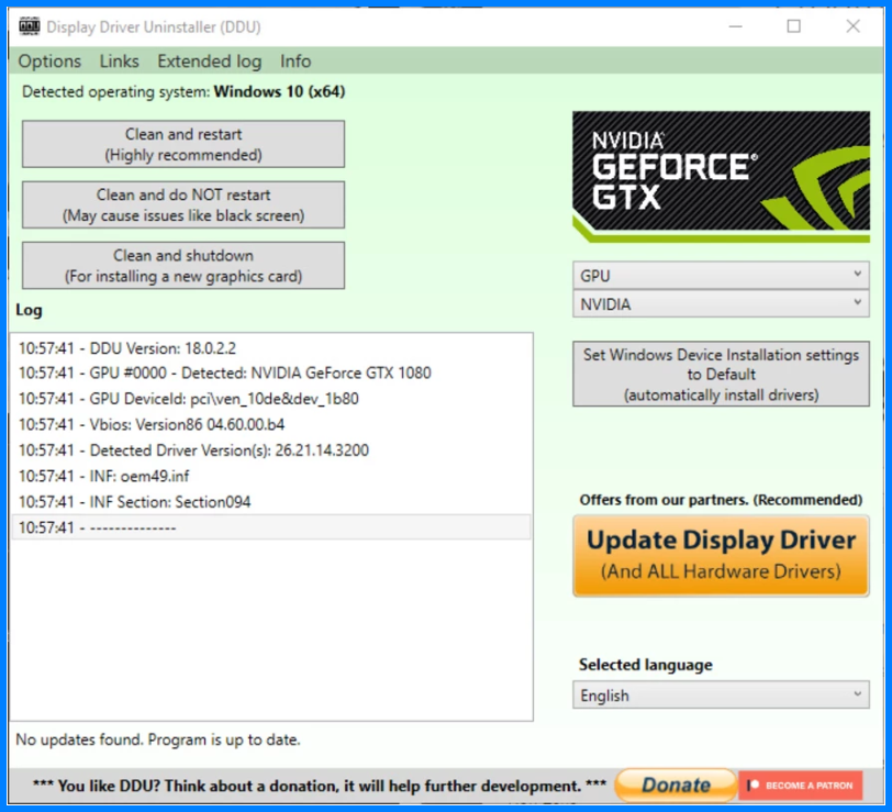 هذا البرنامج الرائع مدعوم من Guru3D.com. سيكون التأثير الحالي بعد استخدام أداة إزالة برامج التشغيل هذه مشابهًا لما إذا كانت هذه هي المرة